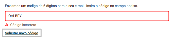 Caso o código de verificação de 6 dígitos esteja inválido ou expirado (expira após 5 minutos)