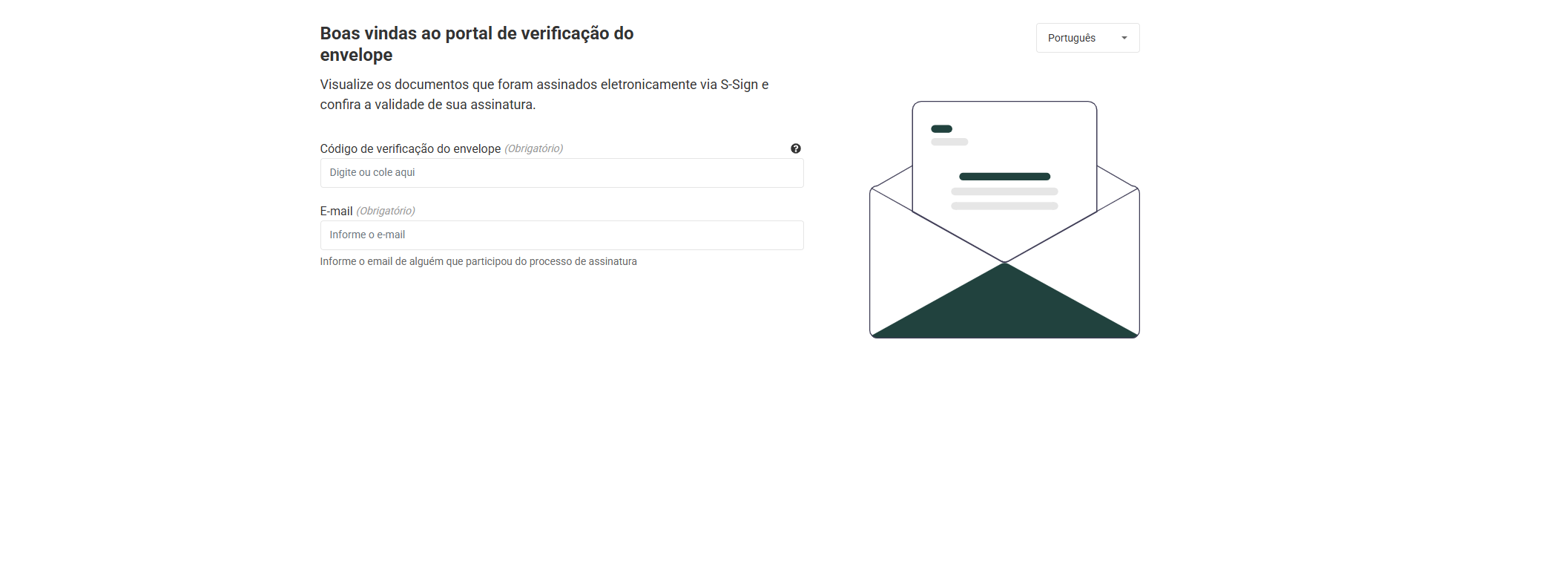 Após assinar o documento é gerado um código de verificação que pode ser validado seguindo os passos abaixo, há a opção de validar um documento ou um envelope.