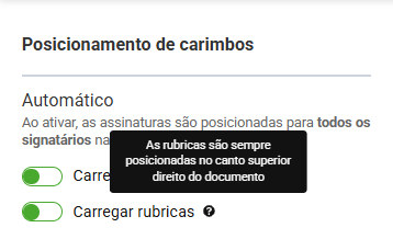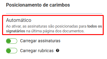 Ao habilitar essa opção, será inserido automaticamente na última página de todos os documentos os carimbos de assinaturas de todos os signatários.